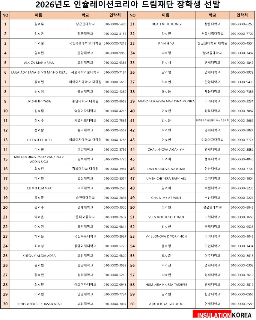 2026년도 인슐레이션코리아 드림재단 장학생 선발 결과 발표